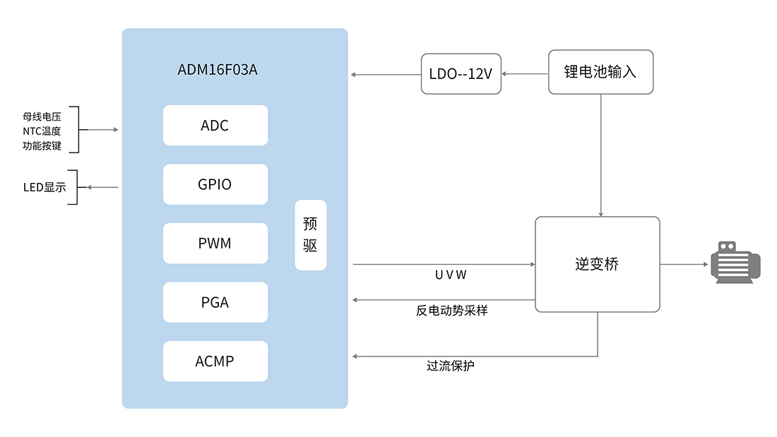 高度集成化方案,內(nèi)置5V LDO及6NMOS預(yù)驅(qū),節(jié)省板型空間及成本;多重檔位控制、適配多種型號(hào)電機(jī)、多重保護(hù)保障作業(yè)安全。