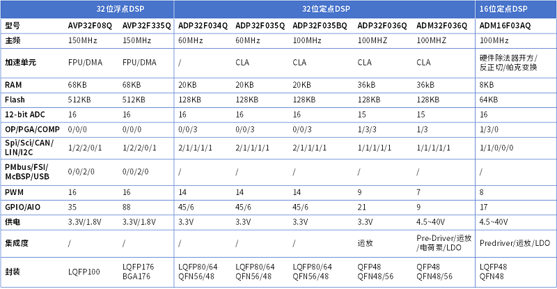 針對(duì)以上需求,進(jìn)芯電子經(jīng)過(guò)多年深耕,推出了符合IATF16949,AEC-Q100 Grade1標(biāo)準(zhǔn)的強(qiáng)大產(chǎn)品陣容,包括:32位浮點(diǎn)高性能DSP芯片AVP32F335系列,32位定點(diǎn)實(shí)時(shí)控制DSP芯片ADP32F034、ADP32F035系列,32位定點(diǎn)車身控制DSP芯片ADP32F036、ADM32F036系列, 16位定點(diǎn)高性價(jià)比DSP芯片ADM16F03系列;全面匹配電動(dòng)汽車從動(dòng)力域到車身域的多種應(yīng)用。進(jìn)芯產(chǎn)品憑借其優(yōu)異性能獲得OEM廠商的認(rèn)可,已實(shí)現(xiàn)商用量產(chǎn),并提供長(zhǎng)期供貨保證。