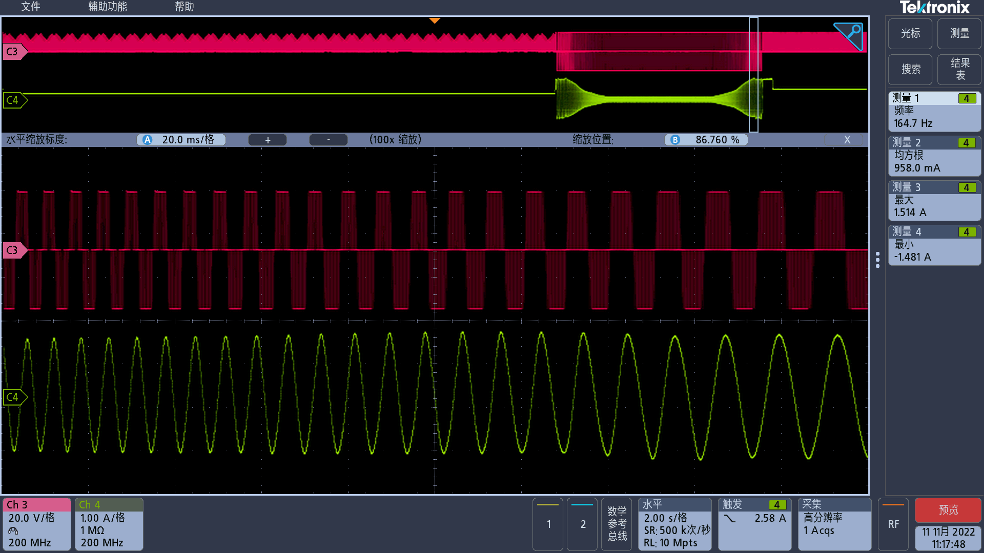基于以上應(yīng)用介紹,我司設(shè)計(jì)了一塊用于驅(qū)動12V兩相四線步進(jìn)電機(jī)的電子水閥的控制DEMO板。板卡實(shí)物圖和實(shí)測波形圖如下圖所示: