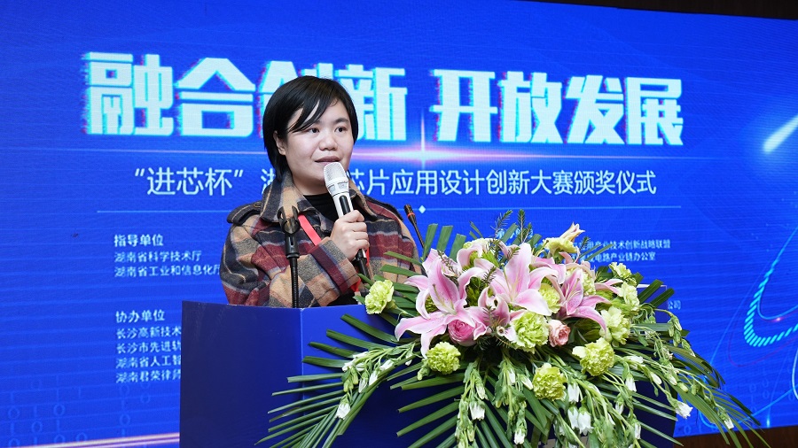評(píng)審結(jié)束后,長(zhǎng)沙工業(yè)和信息化局副局長(zhǎng)張芬發(fā)表重要講話(huà)。她表示集成電路產(chǎn)業(yè)的高質(zhì)量發(fā)展離不開(kāi)產(chǎn)業(yè)鏈上各企業(yè)的協(xié)同創(chuàng)新,本次芯片應(yīng)用設(shè)計(jì)創(chuàng)新大賽秉承著“用心打造產(chǎn)業(yè)生態(tài),推動(dòng)行業(yè)協(xié)同發(fā)展”的精神,重點(diǎn)挖掘芯片創(chuàng)新應(yīng)用領(lǐng)域的優(yōu)質(zhì)項(xiàng)目和專(zhuān)業(yè)人才,這是一次多方共贏、成效倍加的有益嘗試。最后她誠(chéng)摯感謝行業(yè)人士和各大高校對(duì)本次比賽的大力支持,同時(shí)也真誠(chéng)地希望越來(lái)越多的企業(yè)家和專(zhuān)業(yè)技術(shù)人才選擇留在長(zhǎng)沙,為長(zhǎng)沙集成電路產(chǎn)業(yè)發(fā)展添磚加瓦。