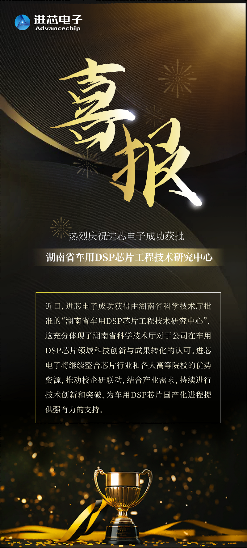喜報!進芯電子成功獲批“湖南省車用DSP芯片工程技術(shù)研究中心”